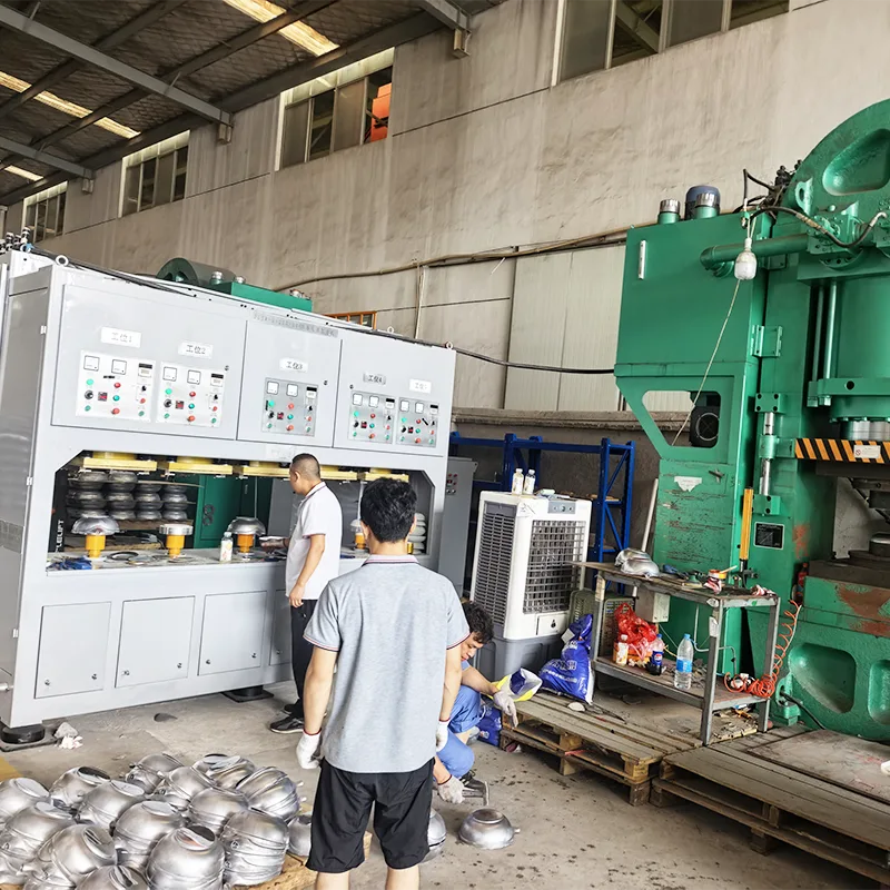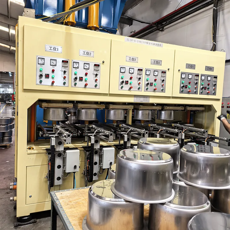Die Arbeitsstelle für Edelstahltöpfe einer Fünf-Stationen-Inline-Heizmaschine eines bekannten Guangdong-Unternehmens